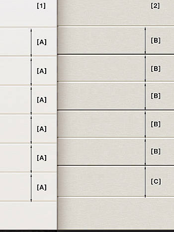 [2] Ungleichmäßige Sickenaufteilung [B], [C] durch unterschiedliche Lamellenhöhen und sichtbare Lamellenübergänge bei Wettbewerbstoren. So entsteht eine unruhige Toransicht.