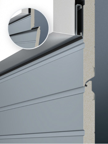 Flächenbündige SturzausgleichsblendeBei LPU Toren ist diese Sturzausgleichsblende die eleganteste Lösung für einen unsichtbaren Übergang von Blende zum Torblatt. Bei geschlossenem Tor schließt das obere Torglied flächenbündig an die Blende an.