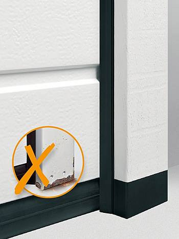 Zusammen mit der Bodendichtung des Tores bildet der Zargenfuß auch optisch einen gelungenen Abschluss.