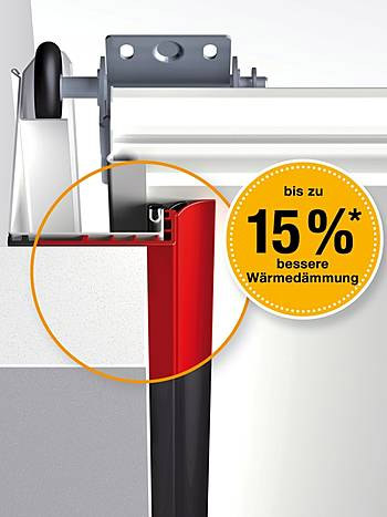Das zusammen mit der Torzarge einfach zu montierende schwarze Kunststoff-Profil sorgt für die thermische Trennung von Zarge und Mauerwerk und verbessert die Dämmung um bis zu 15%*. Sie erhalten den optionalen ThermoFrame Zargenanschluss für alle Hörmann Sektionaltore.