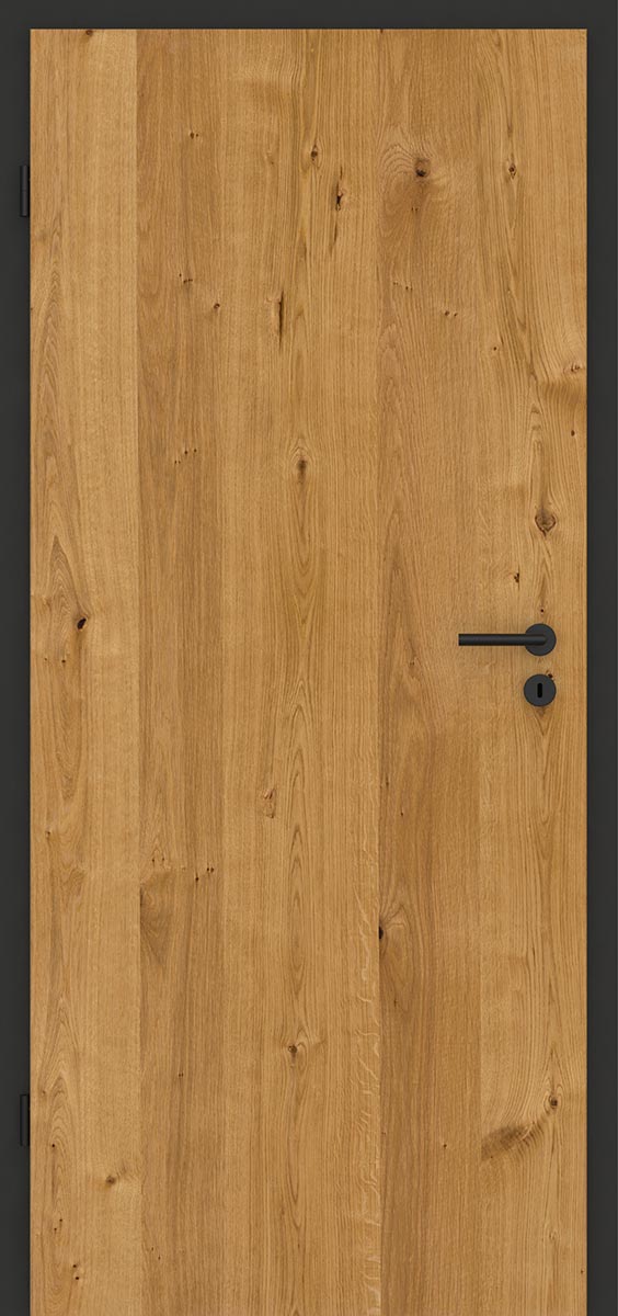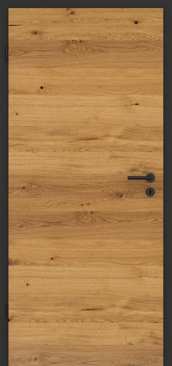 Neben klassischen Echtholztüren und stilvollen Kassettentüren bietet LOBO DOORS auch außergewöhnliche Materialkombinationen für Individualisten, die das Besondere suchen. Warum nicht einmal eine edle, markant gemaserte Echtholztür mit anthrazitfarbenen Zargen sowie dunklen Türgarnituren und Bändern kombinieren?