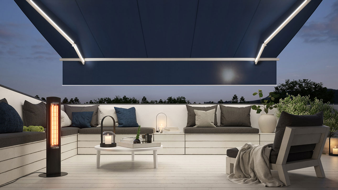 Schlicht und einfach: die neue markilux Kassettenmarkise MX-2 präsentiert sich wie aus einem Guss. Mit oder ohne LED-Beleuchtung glänzt Sie mit bestem Produktdesign und als Sonnenschutz überzeugt Sie auf ganzer Linie. Überzeugen Sie sich jetzt vom harmonischen Design und den eleganten Funktionen der neuen MX-2.