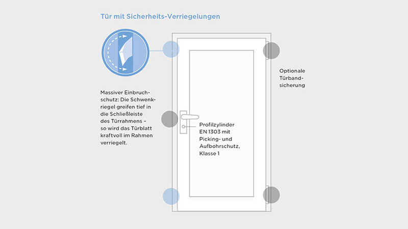 Achten Sie beim Kauf Ihrer Haustür darauf, dass diese mit einer Sicherheits-Tür-Verriegelung von Winkhaus ausgestattet ist. Auch bei einer bestehenden Haustür fragen Sie doch einfach Ihren Sicherheitsexperten nach einer geeigneten Lösung von Winkhaus.