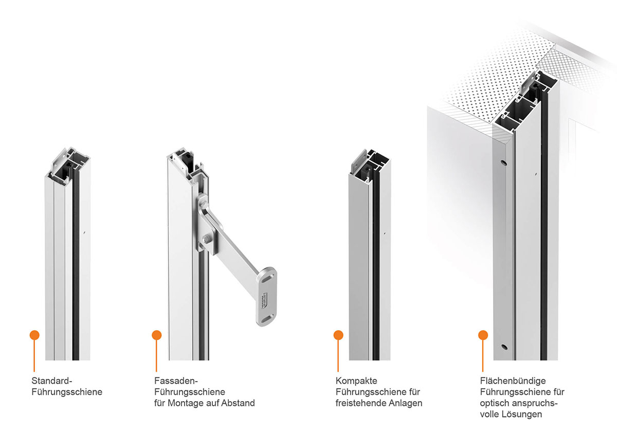 Selbst die Führungsschienen für den zipSCREEN.2 ordnen sich Ihrem gestalterischen Anspruch unter. Sie sind dezent, kompakt und sogar flächenbündig einputzbar beziehungsweise verblendbar. Selbstverständlich bieten wir auch eine Lösung für die Montage auf Abstand.